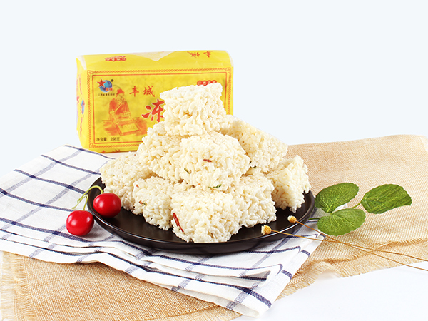 豐城市杜市星球凍米糖廠,是豐城食品生產中的地方傳統名產品。相傳已有兩百多年的生產歷史,以“江南小切,而出名。每年中秋一過,農村家家戶戶把糯米飯涼干,炒成爆花米,用米糖拌粘,切成塊塊,待客解茶。這種糕點叫做“炒米糖”、“米花糖塊”。更講究者,用糯米飯做成凍米“干飯”,再用清茶油煎泡“干飯”,使“干飯,變成爆花米,再用飴糖粘結,冷卻后用薄刀切成小塊,前后經過半成...
